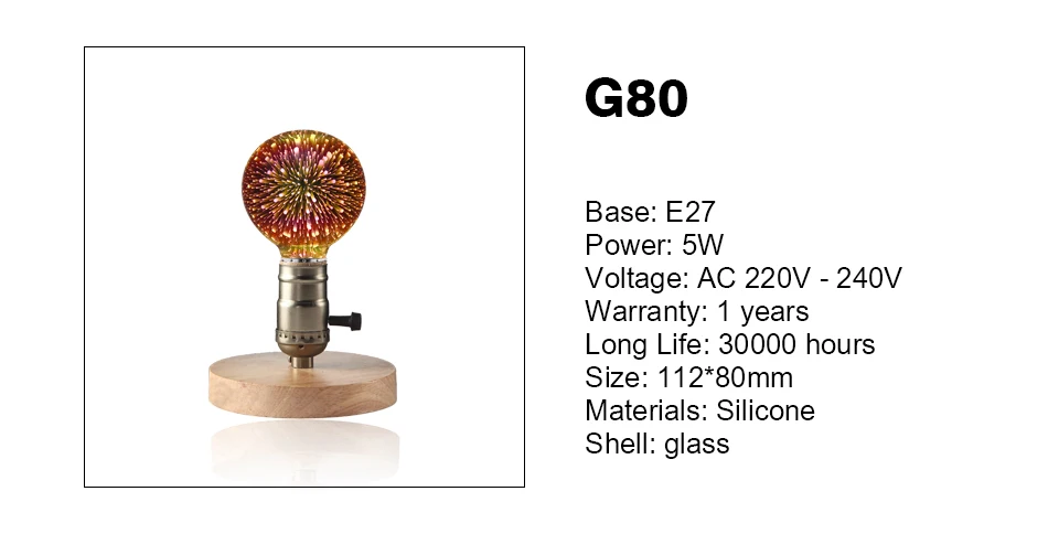 E27 LED Light Bulb 220V A60 ST64 G80 G95 G125 Novelty Indoor Holiday Christmas Decor Lighting 3D Decoration Firework Bulb Lamps